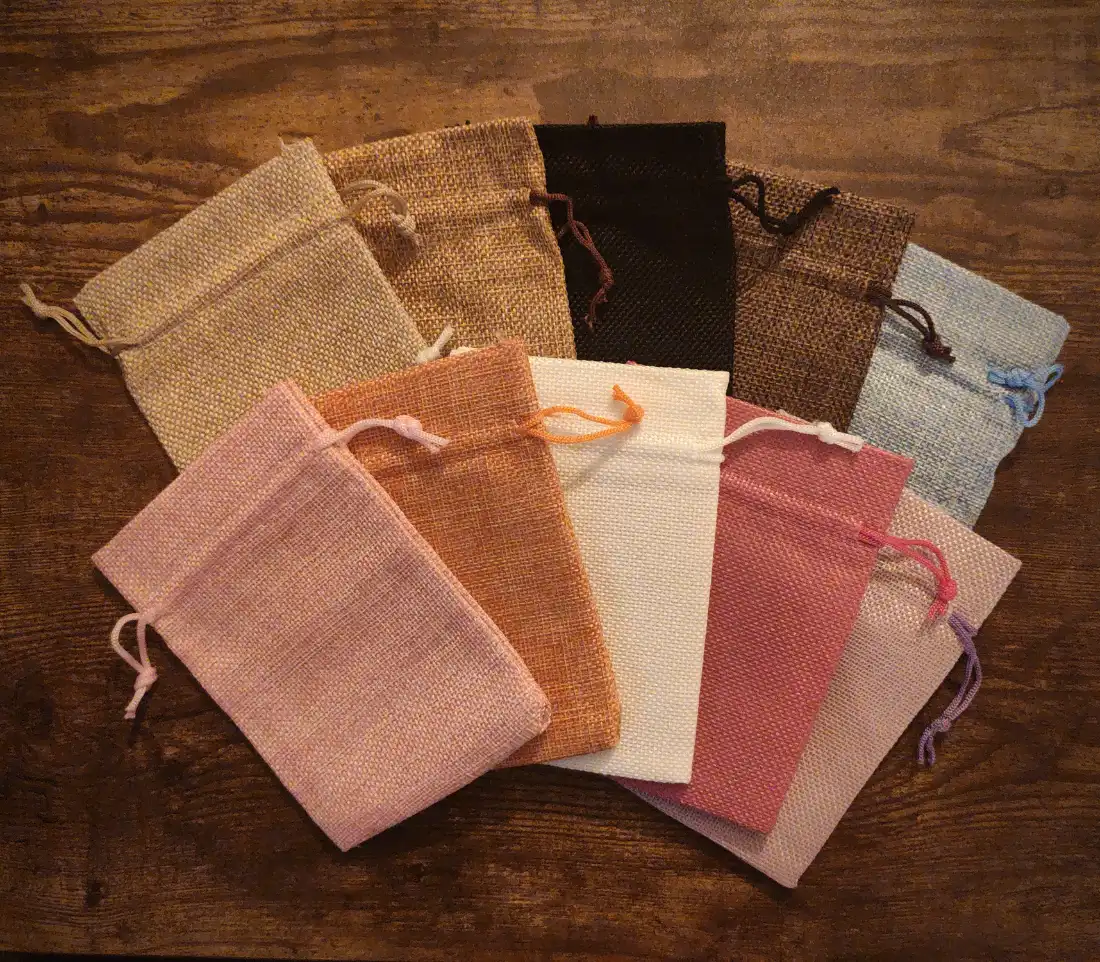 The bags are made in burlap and measure approx. 10 x 14 cm.