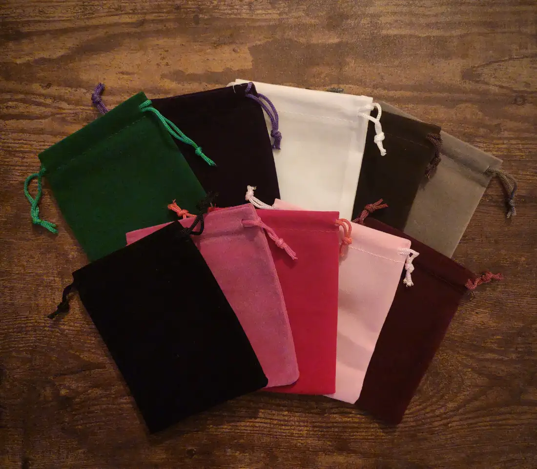 The bags are made in velvet and measure approx. 9 x 12 cm.